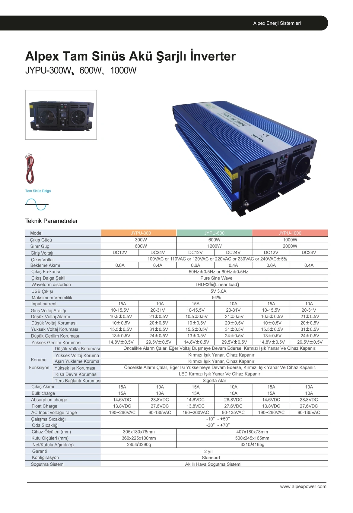 1000 W 12 V Tam Sinüs UPS Bluetooth Ekranlı İnverter – Alpex