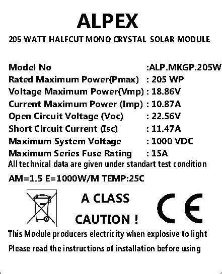 205 Watt HalfCut Mono Kristal Solar Panel