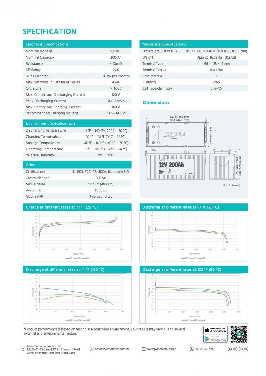 Pylontech 200 Ah 12 Volt Bluetooth Lityum Akü