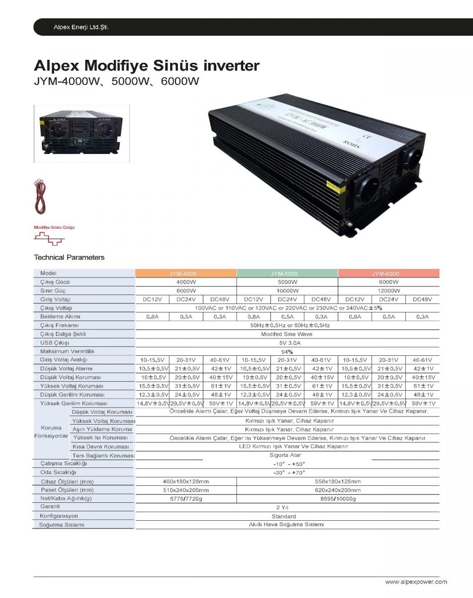 6000 Watt 12/24 Volt Modifiye Sinüs İnverter