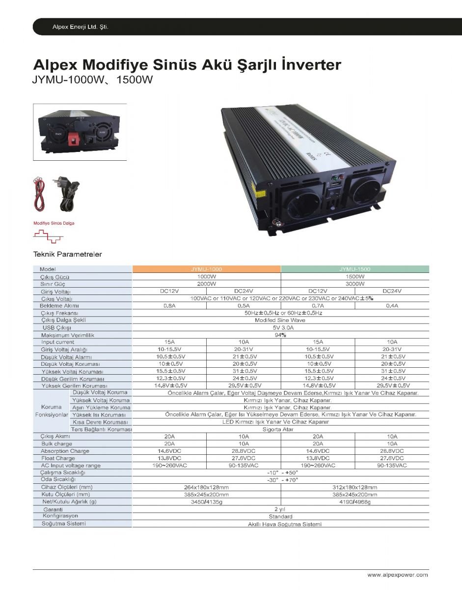 1500 Watt 12/24 Volt Modifiye Sinüs İnverter