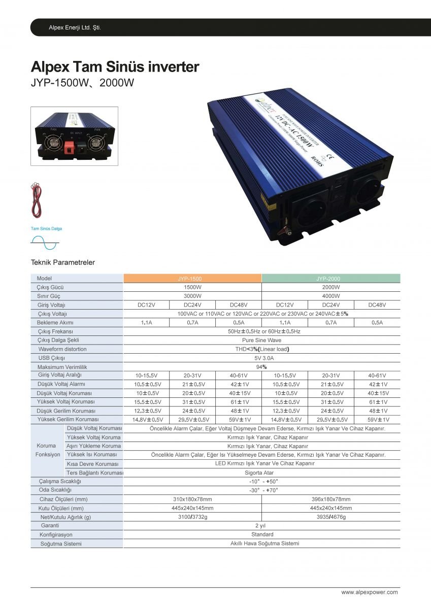 2000 Watt 12/24 Volt Tam Sinüs İnverter