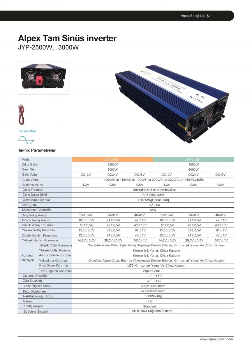 3000 Watt 12/24 Volt Tam Sinüs İnverter